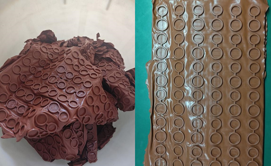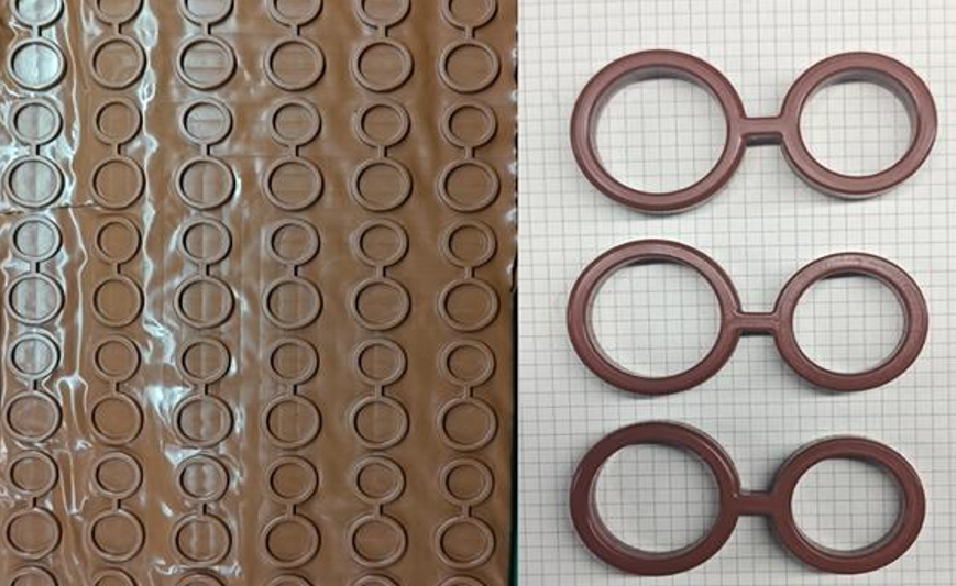 Today, the main test is for an untrimmed rubber O-ring. Before deflashing , the O-rings are neatly arranged on the trimming die. If manual trimming is used, it will be too cumbersome and costly.