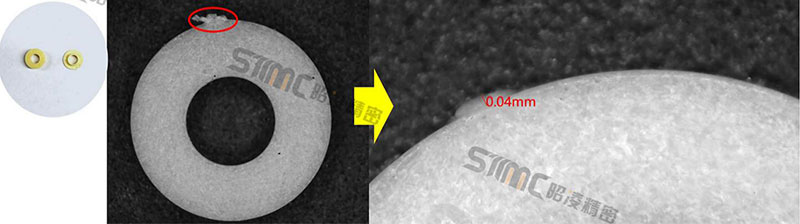 STMC engineers used the NS-60 cryogenic deflashing machine for the test. The NS-60 is built for small, detailed parts and delivers good precision. After processing, burrs at the gate and outer edges were removed, with leftover burrs kept under 0.1 mm. The result was clearly better than manual deflashing and other common methods.