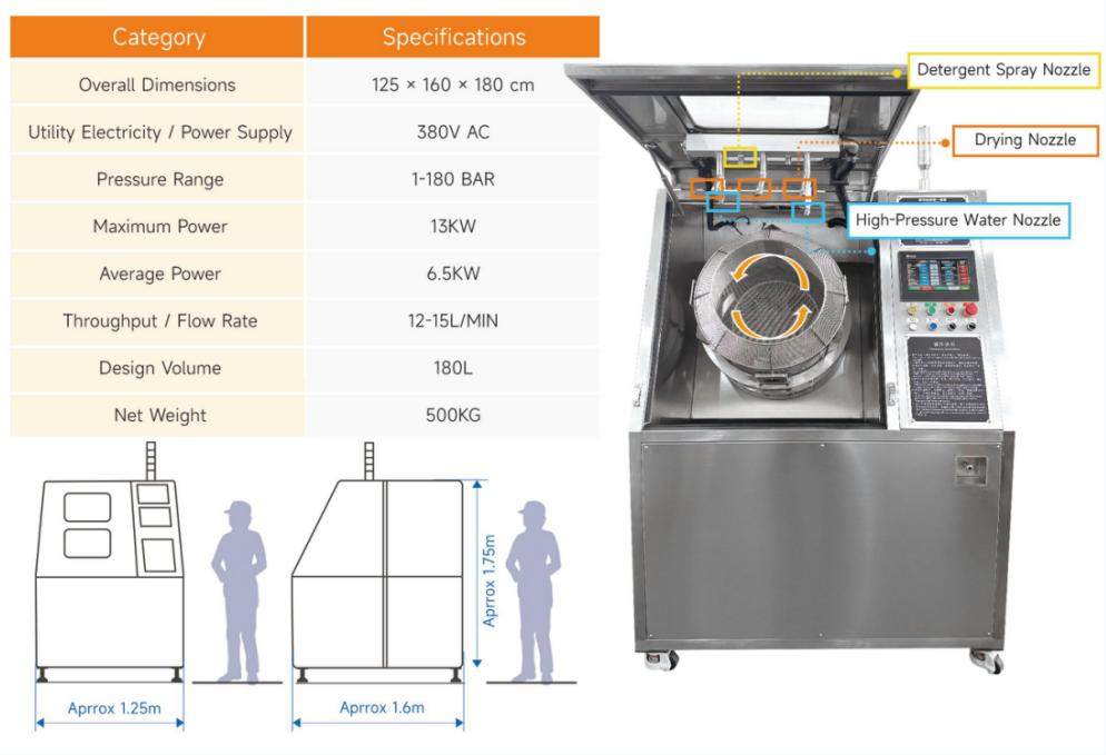 While prioritizing efficiency, the UC-600 is also engineered for operational economy. Its high-speed dehydration system, combined with dual-mode cold and hot drying, ensures rapid and thorough drying with minimal resource consumption—using only 10–15 liters of water per cycle—significantly reducing water, energy, and overall operational costs.